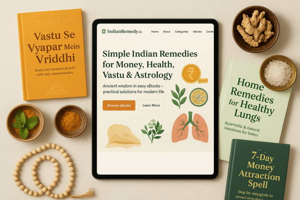 At IndianRemedy.in, we believe solutions to life’s problems—be it money, health, business growth, or personal well-being—are hidden in ancient Indian wisdom. Our carefully written eBooks provide you with step-by-step remedies, rituals, and practices you can apply in your daily life.